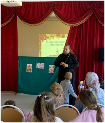 Сюрпризным моментом стало кукольное представление "В школу". Также в ходе мероприятия прозвучали стихи и песня. Почетным гостем на празднике был священник Алексей Проворов, который не только поздравил всех присутствующих с началом учебного года , но и провел родительское собрание, отметив ориентиры предстоящей работы воскресной школы. А ребята, после торжественного открытия учебного года, побывали на заседании киноклуба "ДоброГлаголь", где посмотрели мультфильм "Вовка в Тридевятом царстве", которому исполнилось 60 лет с года выпуска. После просмотра воспитанники пришли к выводу: чтобы добиться результата, нужно самому потрудиться.